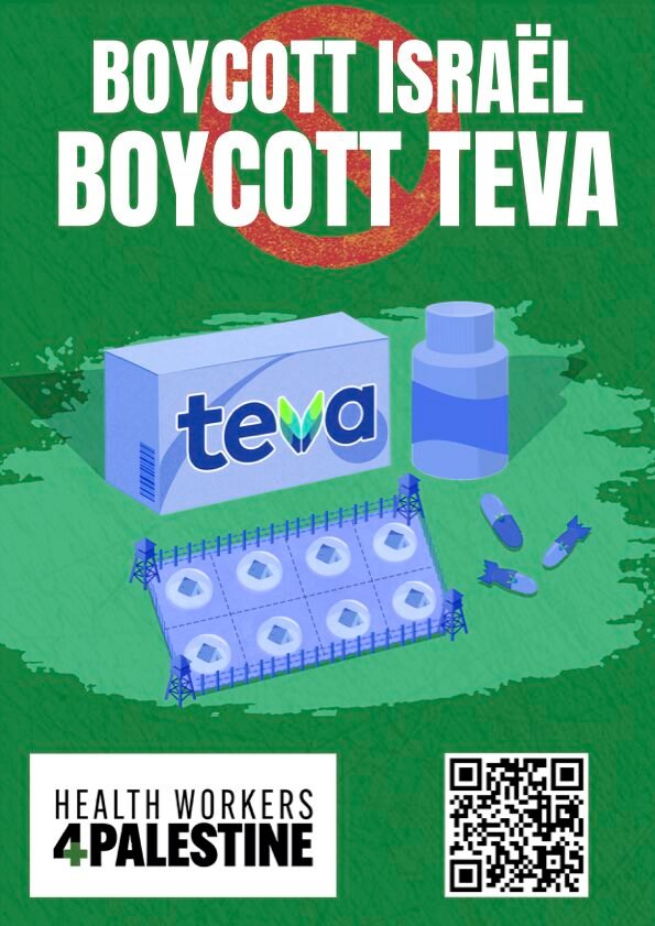 Als zorgprofessionals — artsen, apothekers en andere actoren in de sector — hebben wij een ethische verantwoordelijkheid met betrekking tot het respecteren van mensenrechten. Op ons niveau kan deze verantwoordelijkheid worden uitgeoefend door TEVA te boycotten, om zo ons verzet tegen elke medeplichtigheid aan de schendingen in de Palestijnse gebieden uit te drukken.